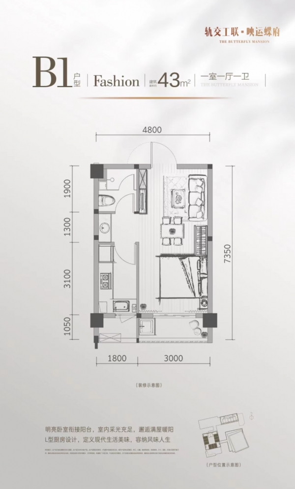 - B1户型 面积:43㎡ 售价:来电咨询 朝向:来电咨询