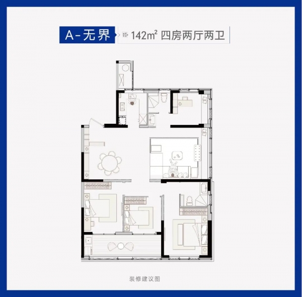 A户型 面积:142㎡ 售价:来电咨询 朝向:来电咨询