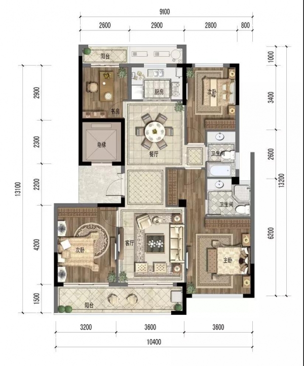 A4户型 面积:131㎡ 售价:来电咨询 朝向:来电咨询