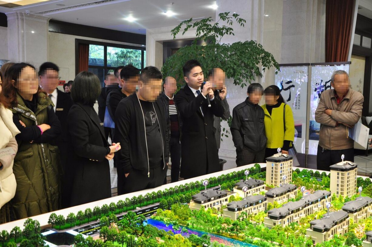 在轩阔的售楼中心,一城人物,高谈阔论,共品鹃湖与紫园。