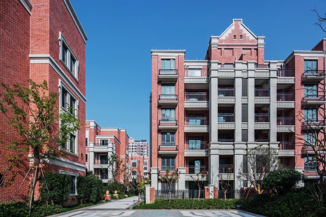 漫步走进工联·红郡,极具英伦风格的红砖褐石风格建筑,在阳光下呈现出温暖的光泽。