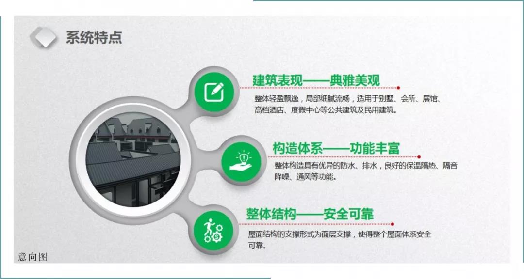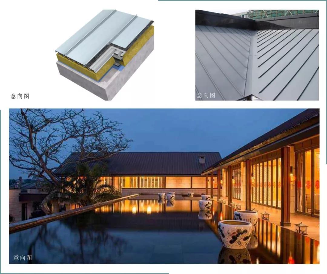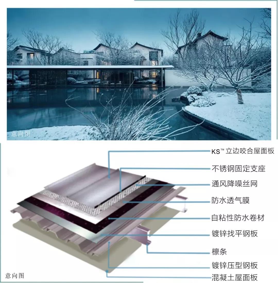 屋顶铺设,亦非平庸运用了270°立边咬合系统此系统在欧美已经非常成熟其技术与材料在建筑领域已超200年的历史配合特殊构造的面板构建不同非凡的屋面系统呈现出典雅美观、功能丰富安全可靠的系统特点