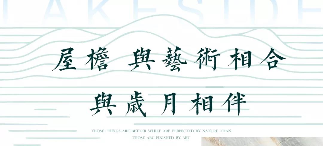 众城·湖滨山庄的屋顶的飞檐设计以古代世家望族府院家宅为蓝本灵感来源于中国书法艺术中一撇一捺并承袭古代飞檐精髓,再加以现代手法改造将直线和曲线巧妙结合,平缓坦然的坡度形成优美的弧线,打造约30 °大屋檐