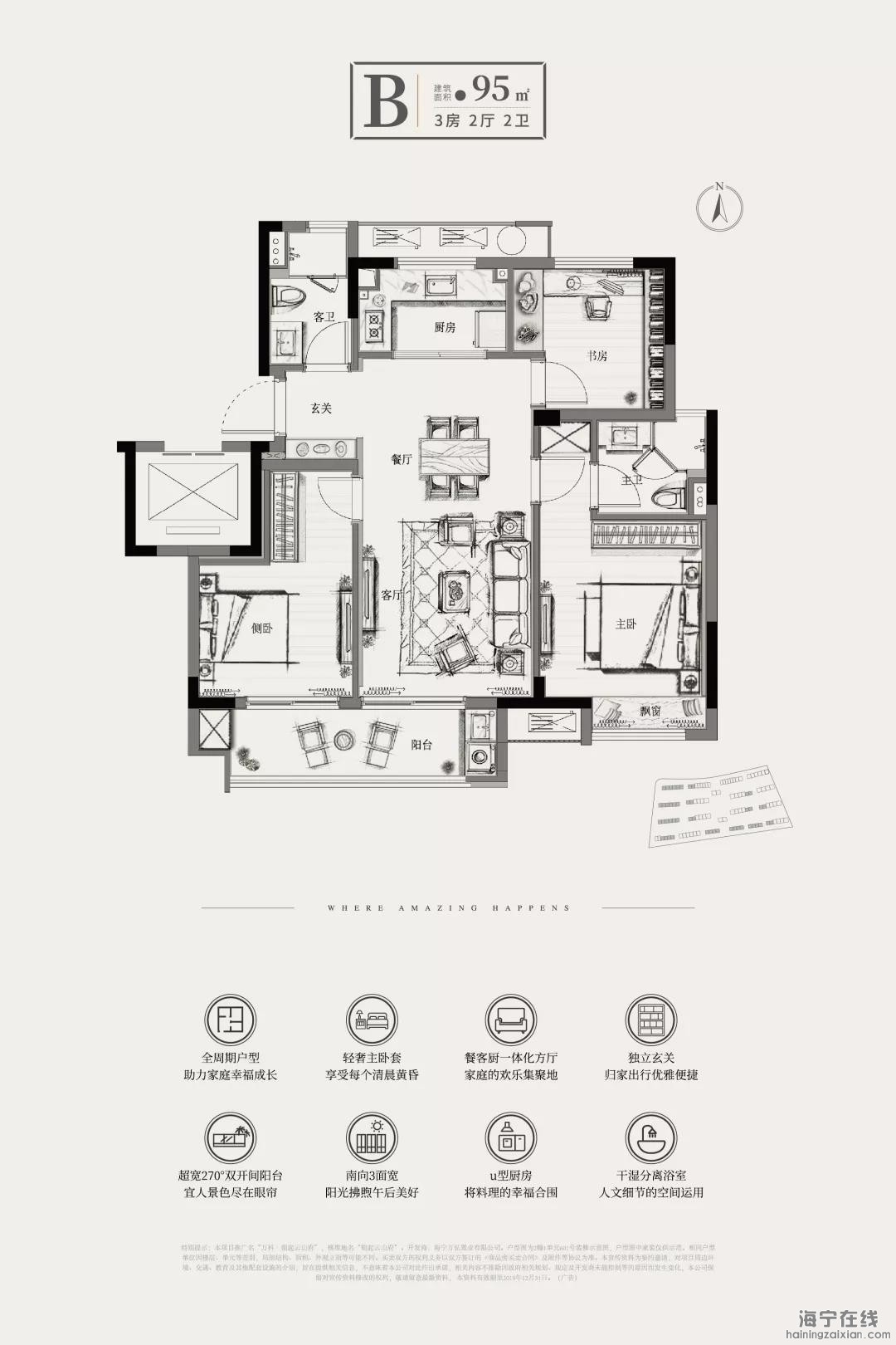 特别提示:本项目推广名“万科·朝起云山府”,核准地名“朝起云山府”。开发商:海宁万弘置业有限公司。对项目周边环境、交通、教育及其他配套设施的介绍,旨在提供相关信息,不意味着本公司对此作出承诺。本宣传资料为要约邀请,相关内容不排除因政府相关规划、规定及开发商未能控制的原因而发生变化,本公司保留对宣传资料修改的权利,敬请留意最新资料。买卖双方的权利义务以双方签订的《商品房买卖合同》及附件等协议为准。本宣传资料于2020年1月17日出街,有效期截止至2020年1月31日。部分图来源于网络,如有侵权,请联系我们删除。