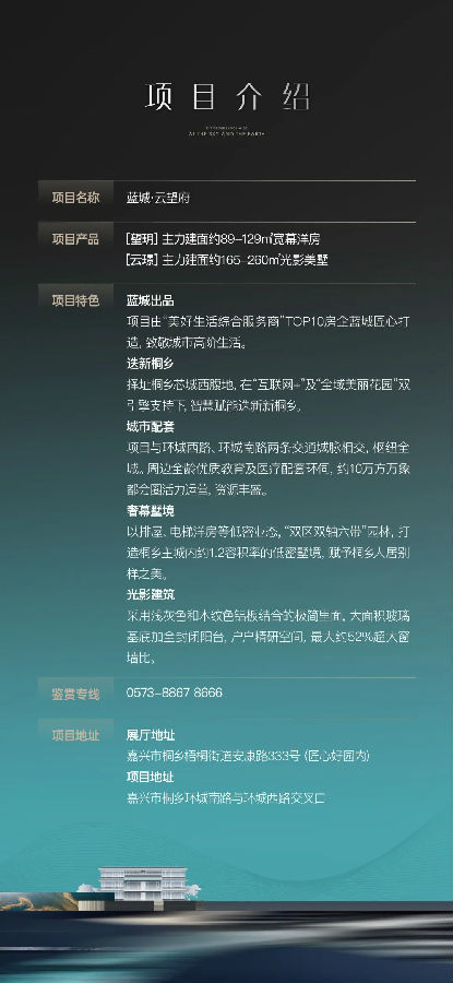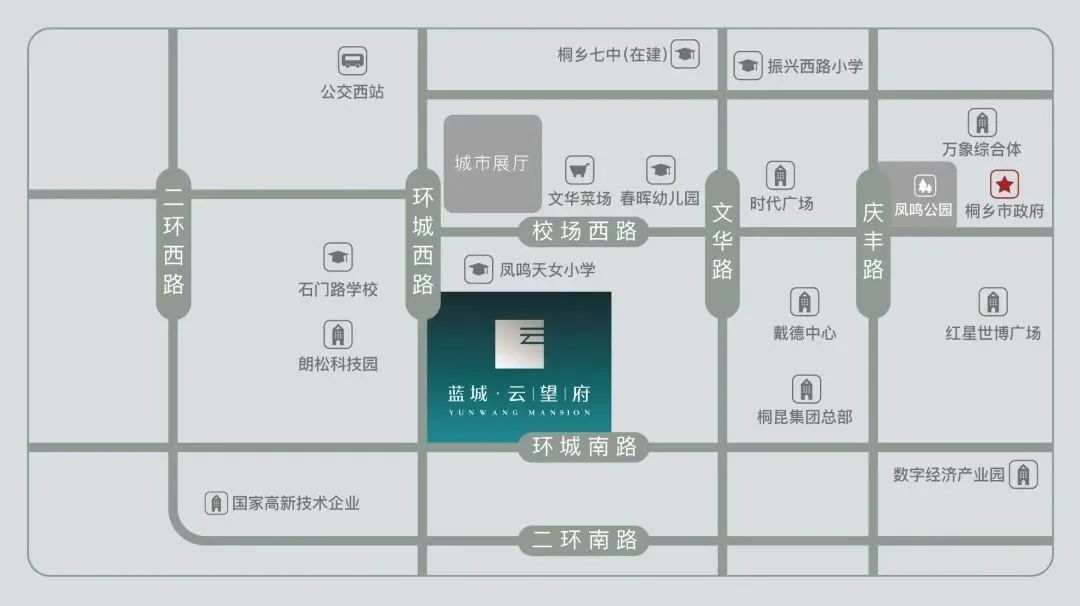 示意图 作为美好生活综合服务商,蓝城·云望府城市展厅如约开放, 以文化、生活、零售、医疗等繁华业态,勾勒城市烟火缩影,开启对话缤纷生活的云端想象。 家门口,兑现一城的繁华。 享受着区域内得天独厚的地理位置,蓝城则奢侈的匠造低密墅境。 围绕在云望府周边,勾勒繁华的城市界面,“最后一公里生活圈”装点日常生活…… 中驿超市,连锁品牌不断上线好物, 距云望府直线距离仅约450m, 零食、日用品还有生鲜超市,满足家庭一站式生活采买; 示意图 桐乡市妇幼保健院 儿科、妇科、产科、口腔科、ICU......一应俱全, 享受家门口的优质医疗服务,就近获高水平妇幼保健服务。 实景图 如果说孩子们是未来,那么我们大人的任务便是为未来提前布局一切。 除了有保健院这样的健康护航外,教育的配套也是不可或缺。 享受周边优渥教育资源的同时,更是一条成才之路。 实景图 无论是桐乡主城亦或周边,在云望府看来, 这里得天独厚的地理位置,促进了区域之间更好的融合发展。 住在这样的城市排屋, 给家人们带来居住空间的升级外,其实远不止于此。 效果图 假如我们以车待步,15分钟可以到达哪些地方? 你能想到的:桐乡市政府、浙北大厦、万象汇商圈......这些都不在话下。 想不到吧?云望府周边,交通的便利畅达、生活的缤纷多彩, 本就是一团浓得化不开的烟火气,让你我的幸福指数不断升腾...... 示意图 华润万象汇 总面积约10万方的万象汇商业综合体,呈现崭新的桐乡商业新形象。 从云望府出发,仅需一脚油门,便可采买一线品牌潮服美妆。 还有适合与三五好友社交的休闲餐饮、带孩子来玩各种娱乐项目...... 是集多元化一体的高端购物中心。 效果图 很多时候,想去一个地方或安家在某处,其实不需要什么理由。 如果硬要说出一二,那么配套、便利等字眼当首当其冲。 可能是因为天天能看到孩子早回家,恰好你也想和他一起疯跑; 可能是在商场喝着星巴克,正巧看到了心仪很久的连衣裙…… 不经意的,一幕幕繁华的烟火人间,诠释着对家的美好向往, 这,便是蓝城云望府,想要带给你的生活之约吧。 蓝城·云望府 城市展厅现已启幕 恭迎品鉴 展厅地址: VIP LINE:0573-8867 8666 免责声明:推广名“蓝城云望府”,本项目核准地名“云望府”。对项目周边环境、交通、教育及其他配套设施的介绍,旨在提供相关信息,不意味着本公司对此承诺。本宣传资料仅为要约邀请,相关内容不排除因政府相关规则、规定及开发商未能控制的原因发生变化,本公司保留对宣传资料修改的权利,敬请留意最新资料。买卖双方的权利义务以双方签订的《商品房买卖合同》及附件等协议为准。开发商:嘉兴市紫蓝置业有限公司 项目地址:嘉兴市桐乡环城南路与环城西路交叉口。本宣传资料于2022年7月19日出街,有效截止至2022年7月31日。部分图片素材来源于网络,因无法联系到版权人,请版权所有人看到后与我们联系。(广告)