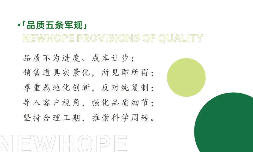 今年,在延续“产品为根,客户为本”的经营理念及产品金字塔基础上,新希望地产进一步细分,迭新“品质五条军规”,即: