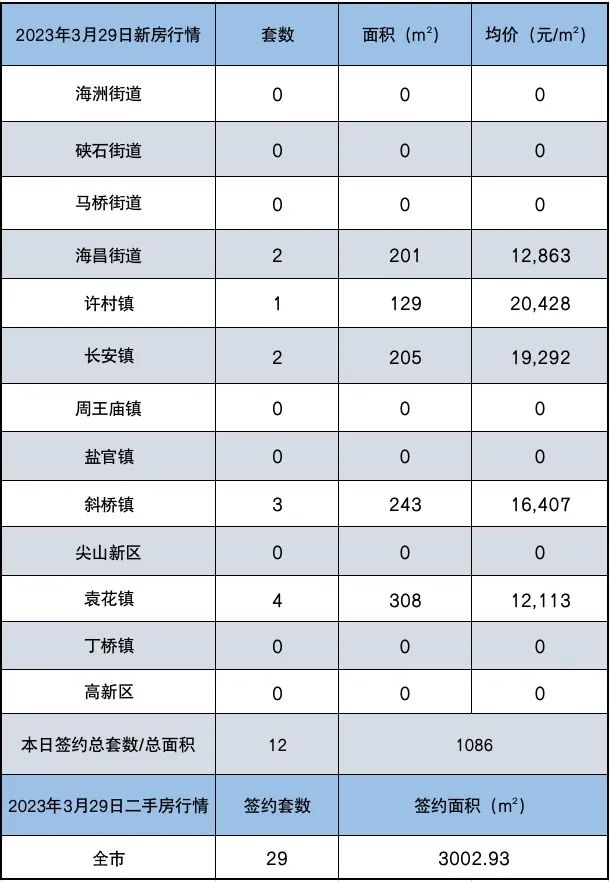 昨天新房签约12套,其中袁花镇签的比较多签了4套,斜桥签了3套,总签约面积1086平方米。二手房签约29套,签约面积3002.93平方米。
