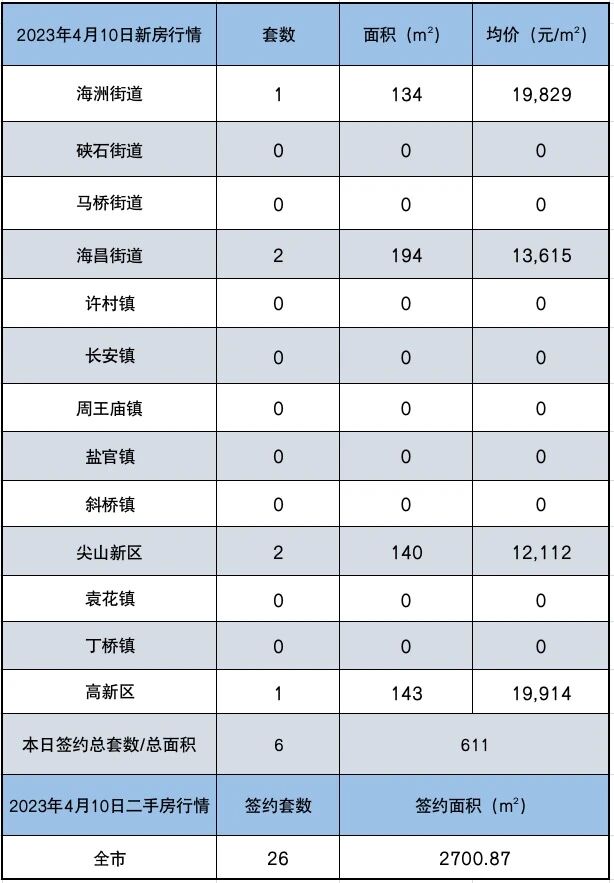4月10日,海宁新房、二手房签约详情如下: