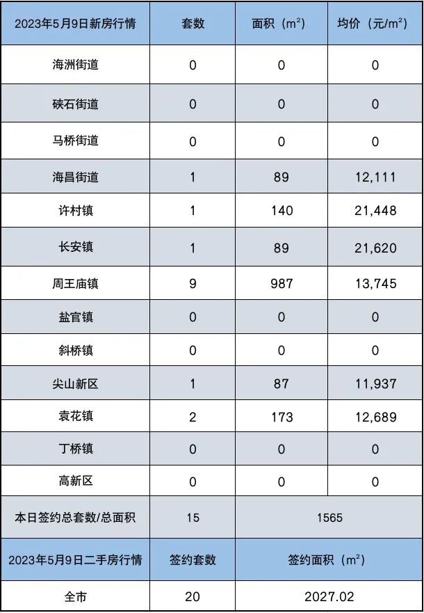 摘要:5月9日,海宁新房、二手房签约详情如下:新房签约15套,其中周王庙签的比较多,签了9套,总签约面积13745平方米。二手房签约20套,总签约面积2027.02平方米。来源:海宁透明售房网截取日期:2023年5月9日22:00